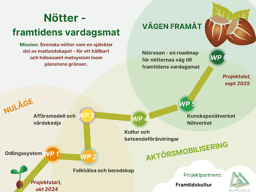 16.10.2024: Vinnova finansierar projektet ”Nötter – framtidens vardagsmat”, ett samarbete mellan MiljöMatematik och Framtidskultur.